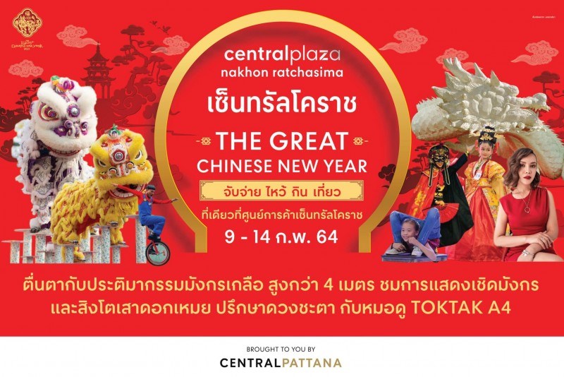 THE GREAT CHINESE NEW YEAR 2021 "THE LAND OF LUCK" วันที่ 9 - 14 กุมภาพันธ์ 2564 ณ ลานกิจกรรม ชั้น 1 เซ็นทรัลโคราช ตรุษจีนอลังการปีวัวทอง จับจ่าย ไหว้ กิน เที่ยว อลังการตระการตากับ "ประติมากรรมมังกรเกลือ" โดยแชมป์โลกช่างแกะสลัก จากเมืองฮาร์บิน ประเทศจีน