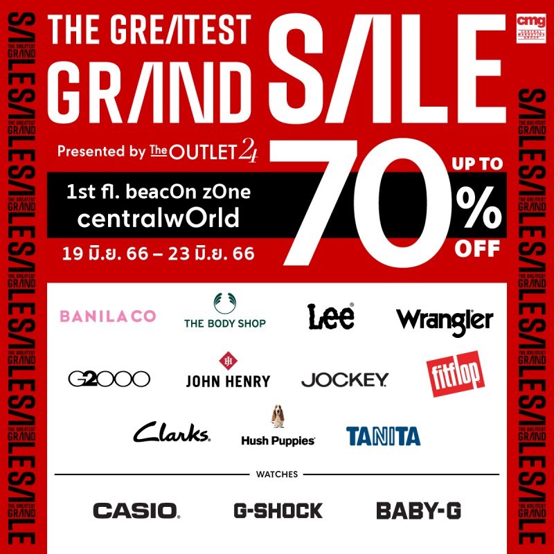 CMG จัดโปรฯ ครั้งใหญ่ ลดเอาใจนักชอป ขนทัพสินค้าแบรนด์โปรดมาพร้อมกับส่วนลดสูงสุด 70% ที่ชั้น 1 โซน Beacon ศูนย์การค้าเซ็นทรัลเวิลด์