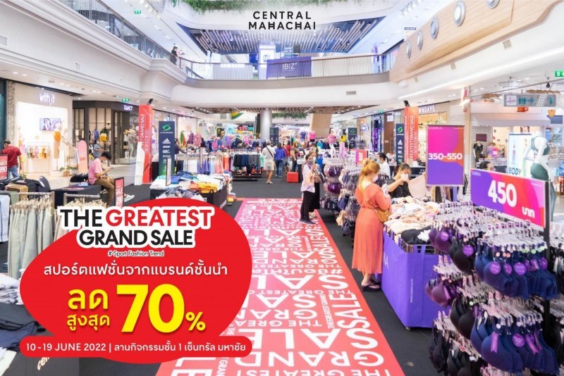 The Greatest Grand Sale - Sport Fashion Trend วันที่ 10 - 19 มิถุนายน 2565 ณ เซ็นทรัลมหาชัย ช้อปกลางเดือน ลดกลางปี สำหรับสายกีฬา และ Sport Wear โดยเฉพาะ สินค้าแฟชั่นจากแบรนด์ชั้นนำ ลดสูงสุด 70% อาทิ Supersports, Giordano และ SABINA ทุกวันศุกร์-วันอาทิตย์ เพียงช้อปภายในงาน ครบ 700.- รับฟรี ของพรีเมียมเอาใจสายสปอร์ต (สำหรับ 10 คนแรก/วันเท่านั้น) ชมการแสดง Cover Dance ของน้องๆ ทีมประกวด To be Numer 1 วันที่ 18 มิ.ย. 65 เวลา 15.00 น. ชมแฟชั่นโชว์รุ่นจิ๋ว วัยน่ารัก ในวันที่ 19 มิ.ย. 65 เวลา 14.00 น. แล้วพบกันในงาน The Greatest Grand Sale - Sport Fashion Trend ในวันที่ 10 - 19 มิ.ย. 65 ณ ลานกิจกรรมชั้น 1 เซ็นทรัลมหาชัย
