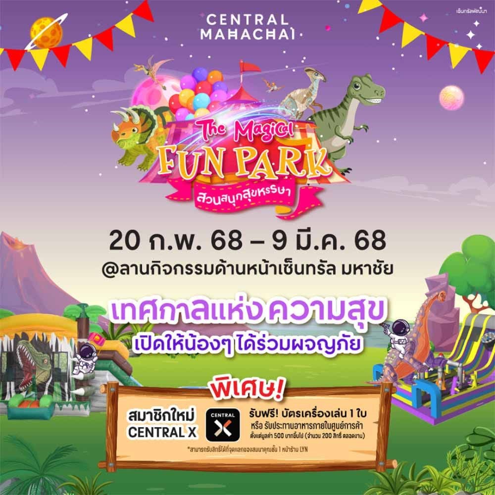 เตรียมตัวให้พร้อม ชวนคุณหนูๆและผู้ปกครอง มาสนุกหรรษาไปกับงาน "The Magical Fun Park" เพลิดเพลินไปกับเครื่องเล่นมากมาย และหุ่นจำลองไดโนเสาร์สุดว้าว ที่ยกมาถึงเซ็นทรัลมหาชัย ตั้งแต่วันที่ 20 ก.พ- 9 มี.ค. 68 ณ ลานกิจกรรมหน้าศูนย์การค้าเซ็นทรัล มหาชัย เปิดให้บริการ ตั้งแต่เวลา 15.00 - 21.00 น.