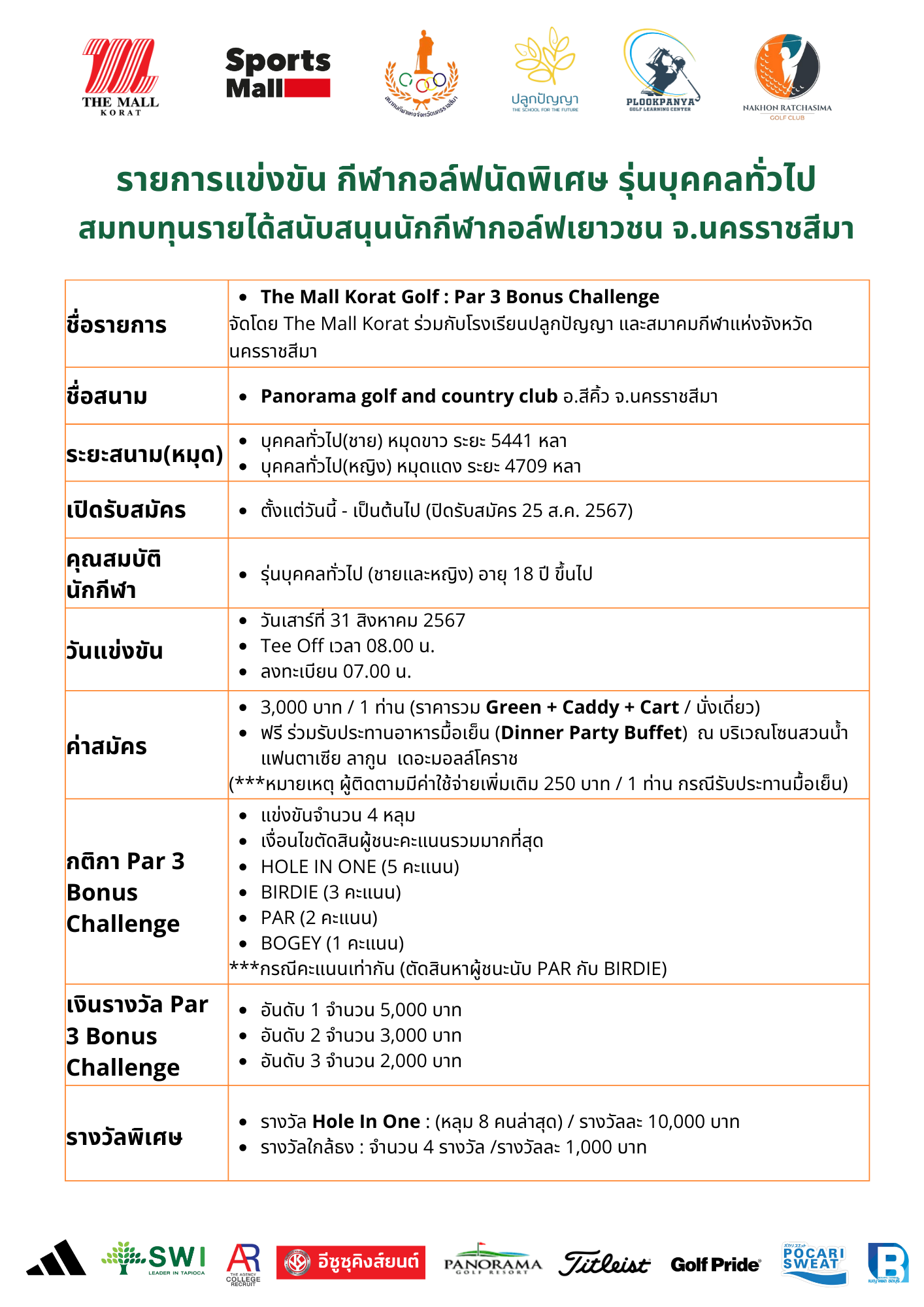 แข่งขัน The Mall Korat Golf : Par3 Bonus Challenge ณ Panorama golf and country club อ.สีคิ้ว จ.นครราชสีมา