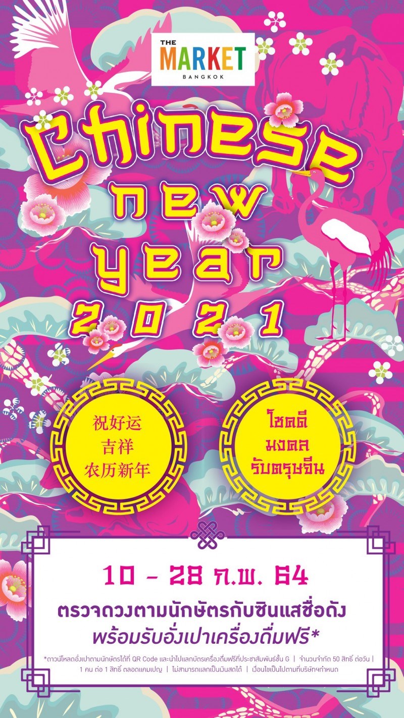 ซินเหนียนไคว่เล่อ! ฉลองโมเม้นท์ตรุษจีนไปกับ The Market Bangkok ขอส่งต่อความสุขและโมเม้นท์โชคดี มงคลรับตรุษจีน ชวนคุณมา ตรวจดวงชะตาตามนักษัตรปีเกิด พร้อมรับอั่งเปาเครื่องดื่ม ฟรี! ช้อปไอเท็มเสริมมงคล เสริมโชคลาภ ให้มั่งมีต้อนรับปีฉลู