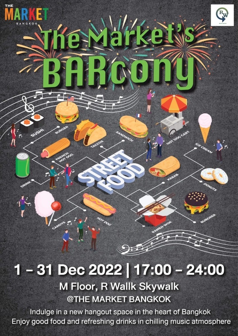 ต้อนรับเทศกาลเฉลิมฉลอง ตลอดเดือน ธ.ค.นี้ มาร่วมดื่มด่ำกับบรรยากาศสุดฟิน Hangout space สุดคูลแห่งใหม่ใจกลางเมือง กับอาหารดีดี เครื่องดื่มเย็น ๆ นั่งเล่นชิล ๆ พร้อมเสียงเพลงเพราะ ๆ กับ "The Market’s BARcony" ณ บริเวณ R walk ศูนย์การค้าเดอะมาร์เก็ต แบงคอก ตั้งแต่เวลา 17.00 - 24.00 น.