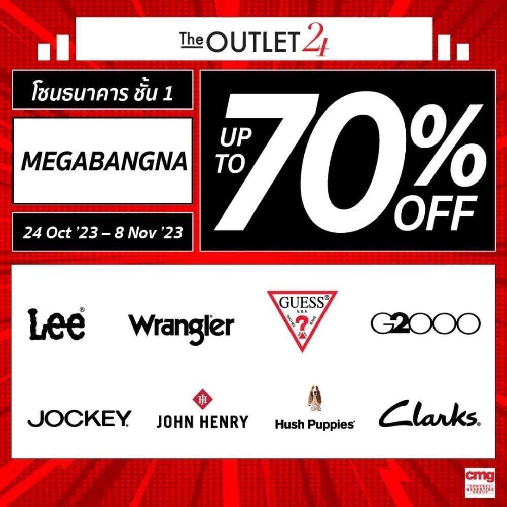 The Outlet 24 ชอบสนุกทุกสไตล์ กับแฟชั่นไอเทมจากแบรนด์ชั้นนำในเครือ cmg ที่มาพร้อมส่วนลดสูงสุด 70% เริ่ม 24 ต.ค. 66 - 8 พ.ย. 66 ที่โซนธนาคาร ชั้น 1 ศูนย์การค้าเมกาบางนา