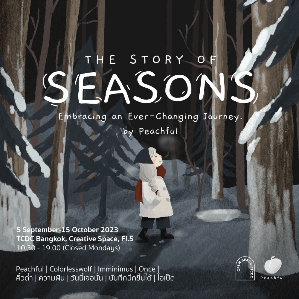 Peachful ขอเชิญทุกท่านร่วมสัมผัสการเดินทางที่จะสะท้อนความรู้สึกส่วนลึก และพาคุณโอบรับทุกความเป็นไปในตัวเราในนิทรรศการ "The Story of Seasons : สีสันแห่งฤดูกาล" ระหว่างวันที่ 5 กันยายน - 15 ตุลาคม 2566 เวลา 10:30 น. - 19:00 น. (ปิดวันจันทร์) ณ TCDC กรุงเทพฯ, Creative Space ชั้น 5