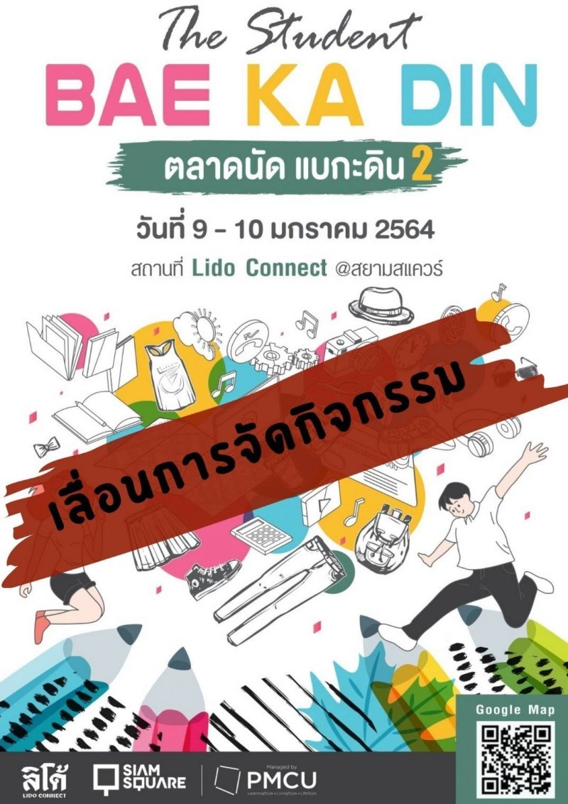 The Student Bae-Ka-Din วันที่ 30 ตุลาคม 2563 - 15 พฤศจิกายน 2563 ณSiam Square One งานดี ๆ ที่ทุกคนรอคอยกลับมาอีกแล้วจ้าา ใครยังติดใจในบรรยากาศงานรอบที่แล้ว และยังขายกันไม่จุใจ ยังซื้อกันไม่เต็มที่ รอบนี้ต้องมาซ้ำนะ สำนักงานจัดการทรัพย์สิน จุฬาฯ(PMCU) และ Lido Connect เปิดพื้นที่แห่งโอกาส เปิดตลาดให้น้องๆ นักเรียน นิสิต นักศึกษา ทุกคนทุกสถาบัน! มาร่วมกันออกบูธขายของโชว์ไอเดีย โชว์ฝีมือ ที่งาน "The Student Bae-Ka-Din" (ตลาดนัดแบกะดิน)