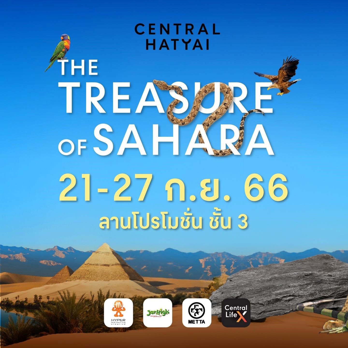มาผจญภัยในดินแดนแห่งทะเลทราย กับงาน “The Treasure of Sahara” ชมสัตว์แปลกหายากกว่า 20 สายพันธุ์ ตะลุย 4 ฐาน หาสมบัติ พร้อมรับของรางวัล เพลิดเพลินไปกับการถ่ายรูปและป้อนอาหารสัตว์ ช้อปสินค้าสำหรับสัตว์เลี้ยงแสนรัก แล้วมาผจญภัยในดินแดนแห่งทะเลทราย วันที่ 21 - 27 กันยายน 2566 ณ ลานกิจกรรม ชั้น 3 เซ็นทรัล หาดใหญ่