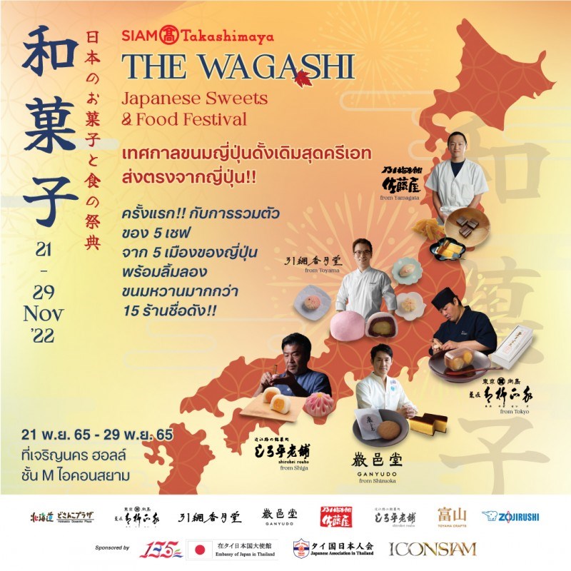 วันที่ 24 พ.ย. 65 - 27 พ.ย. 65 : ร่วมลิ้มลองความอร่อยกับขนมสไตล์ดั้งเดิม "WAGASHI - วากาชิ" ต้นตำรับขนานแท้จากประเทศญี่ปุ่น โดย 5 เชฟดัง จาก 5 ร้าน ที่บินตรงมาจากประเทศญี่ปุ่นมาครีเอทเมนูพิเศษ