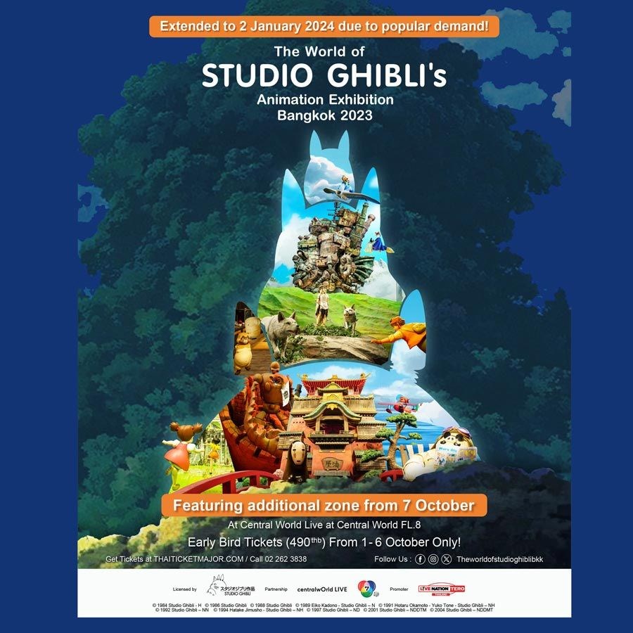 ‘THE WORLD OF STUDIO GHIBLI'S ANIMATION EXHIBITION BANGKOK 2023’ รอบใหม่จะเปิดให้เข้าชมได้ตั้งแต่ 7 ตุลาคม ถึง 2 มกราคม 2567 ที่เซ็นทรัลเวิลด์ไลฟ์ ชั้น 8 ศูนย์การค้าเซ็นทรัลเวิลด์ จำหน่ายบัตร Early Bird สำหรับรอบใหม่ในวันที่ 1 – 6 ตุลาคมนี้ เพียง 490 บาทเท่านั้น