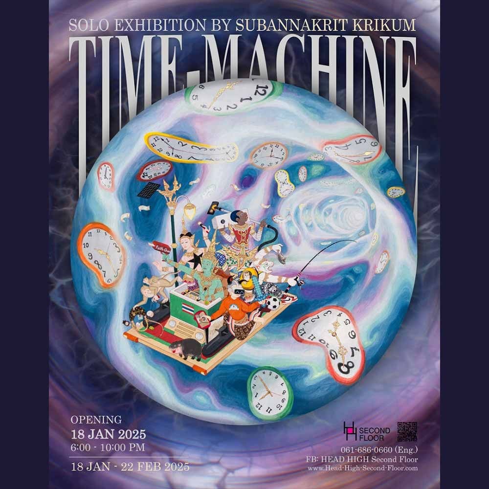 Head High Second Floor ภูมิใจนำเสนอ “Time Machine” นิทรรศการเดี่ยวโดย สุบรรณกริช ไกรคุ้ม “ศิลปะไทย” เป็นสิ่งที่ สุบรรณกริช ไกรคุ้ม ให้ความสนใจมาตั้งแต่เด็ก เขาได้เรียนรู้กระบวนการดั้งเดิมและเรื่องราวเบื้องหลังของจิตรกรรมฝาผนังในแต่ละยุคสมัยผ่านการศึกษาในภาควิชาศิลปะไทย มหาวิทยาลัยศิลปากร จากประวัติศาสตร์อันยาวนาน เขาตระหนักดีว่า “จิตรกรรมไทยเป็นภาพสะท้อนของประวัติศาสตร์ไทย” ในงานของเขา ศิลปินได้นำเสนอแนวคิดเกี่ยวกับการบันทึกประวัติศาสตร์โดยสะท้อนถึงเหตุการณ์ทางสังคม เศรษฐกิจ และวัฒนธรรมในประเทศไทยในปัจจุบันผ่านมุมมองและข้อคิดของเขาเอง