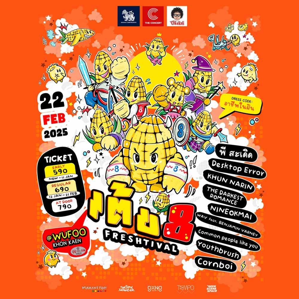 กลับมาอีกครั้งแบบยัดเยียด แม้ไม่มีใครเรียกร้อง กับ “เต้ย FRESHTIVAL ครั้งที่ 8” งานดนตรีที่จะทำให้คุณสนุกไปจนถึงกระดูกดำ (บางครั้งก็ปวดหลัง ปวดข้อเข่าบ้างนิดๆ) ครั้งนี้มาพร้อมกับ “น้องข้าวโพด” ที่จะชวนทุกคน แต่ง Dresscode “อาชีพในฝัน” ไปลงดันเจี้ยนเก็บเลเวลแห่งความประทับใจไปด้วยกับ 9 ศิลปิน