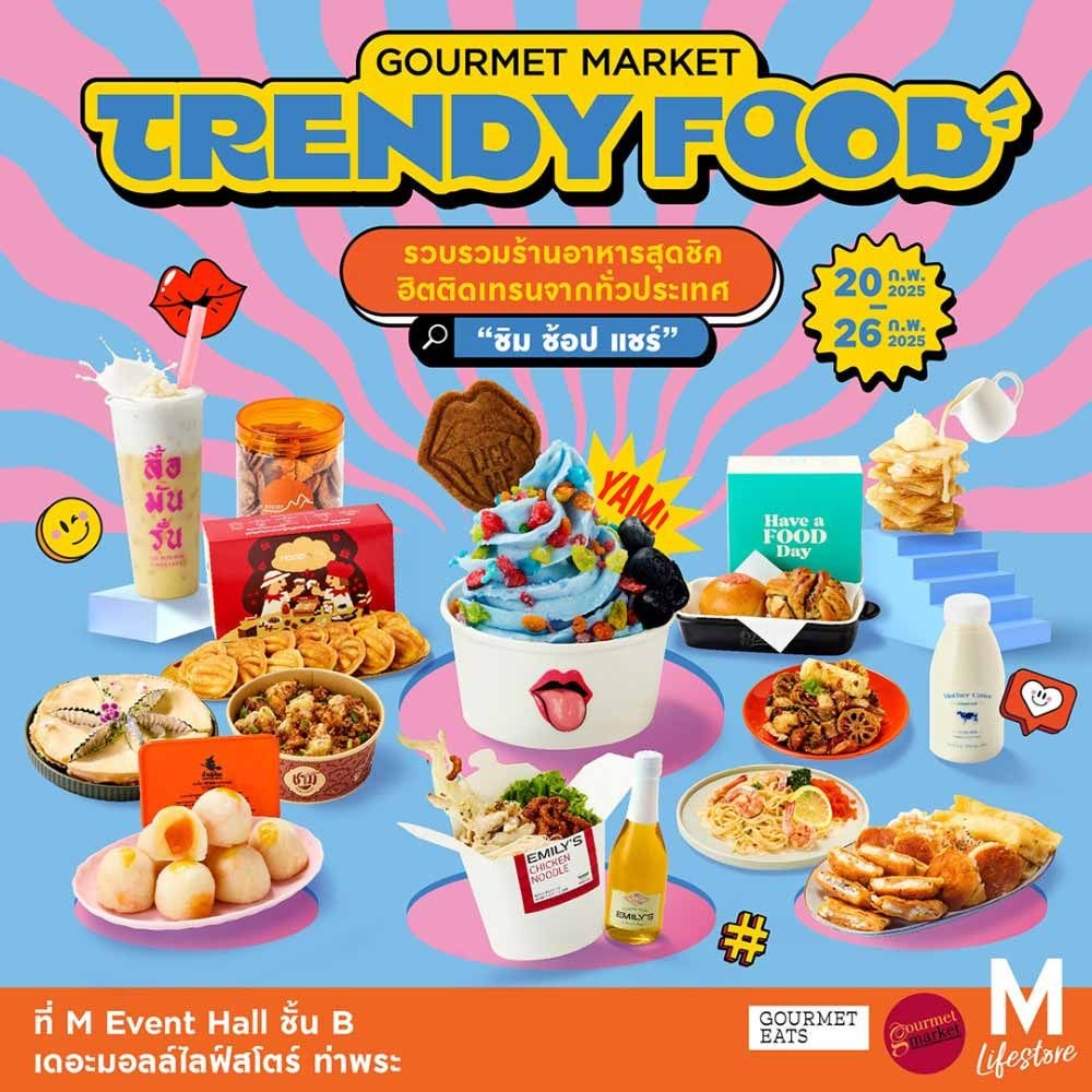 ชาวท่าพระ ห้ามพลาดเพราะ Gourmet Market & Gourmet Eats ได้รวบรวมตัวท็อป ที่สุดของความอร่อยจากร้านเด็ดร้านดังติดเทรนด์มาไว้ที่งานนี้แล้วกับ “Trendy Food” ทั้งอาหารพร้อมทาน ขนม เครื่องดื่ม และวัตถุดิบคุณภาพ ตอบโจทย์ทุกไลฟ์สไตล์ แวะมาอิ่มอร่อยกันได้ตั้งแต่วันที่ 20 ก.พ. 2568 - 26 ก.พ. 2568 เฉพาะที่ M Event Hall เดอะมอลล์ไลฟ์สโตร์ ท่าพระ ชั้น B