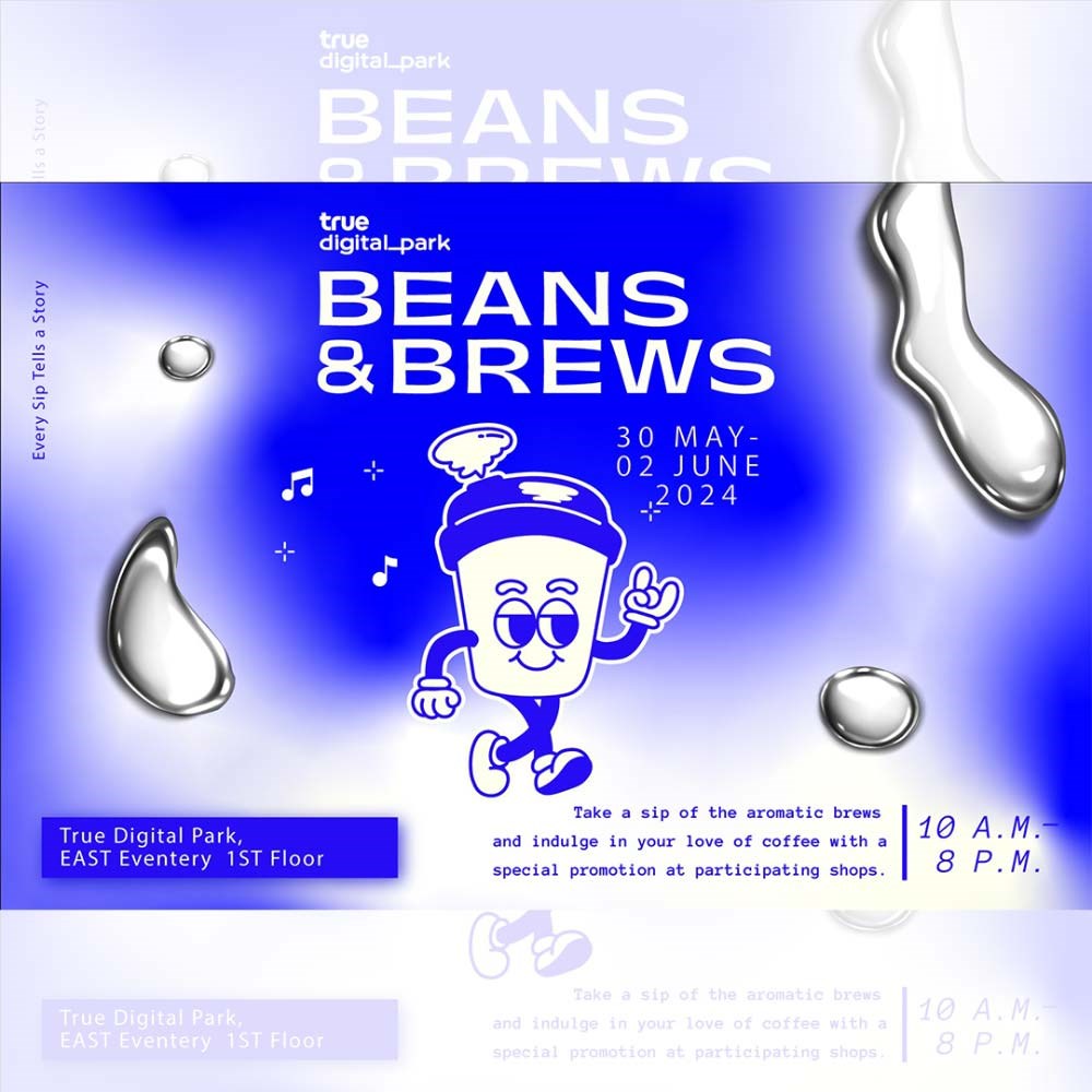 ทรู ดิจิทัล พาร์ค เตรียมเปิดประสบการณ์คอมมูนิตี้สุดพิเศษสำหรับคนรักกาแฟ จัดงาน TRUE DIGITAL PARK BEANS & BREWS เทศกาล Specialty Coffee ภายใต้แนวคิด EVERY SIP TELLS A STORY พบกับการรวมตัวครั้งสำคัญของร้านกาแฟระดับแชมป์ประเทศไทยและร้าน Specialty Coffee ชื่อดังที่คอกาแฟพลาดไม่ได้ กับการเสิร์ฟกาแฟรสชาติอันเป็นเอกลักษณ์และการบอกเล่าเรื่องราวสุดพิเศษของการคัดสรรกาแฟพันธุ์ดี ผ่านขั้นตอนการรังสรรค์เป็น Signature Menu อาทิ