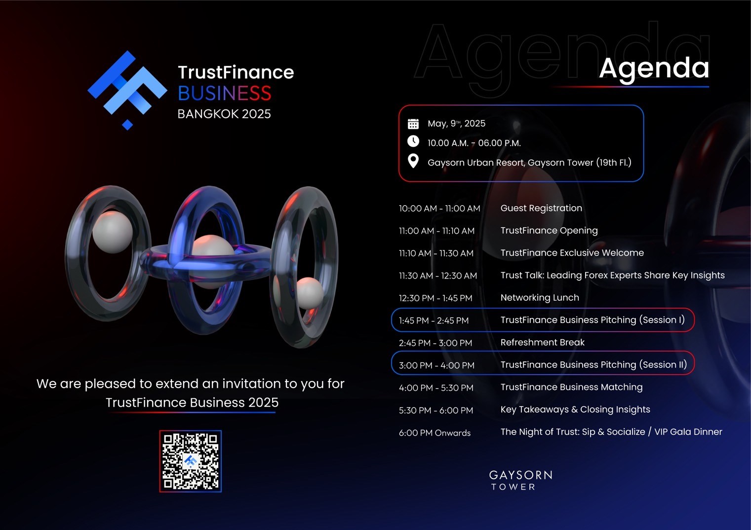 TrustFinance Business Bangkok 2025 is the ultimate B2B matchmaking event, connecting top-tier Forex brokers with service providers in technology, liquidity, payments, compliance, and more. This exclusive event is designed to foster strategic partnerships, innovation, and growth within the Forex industry.