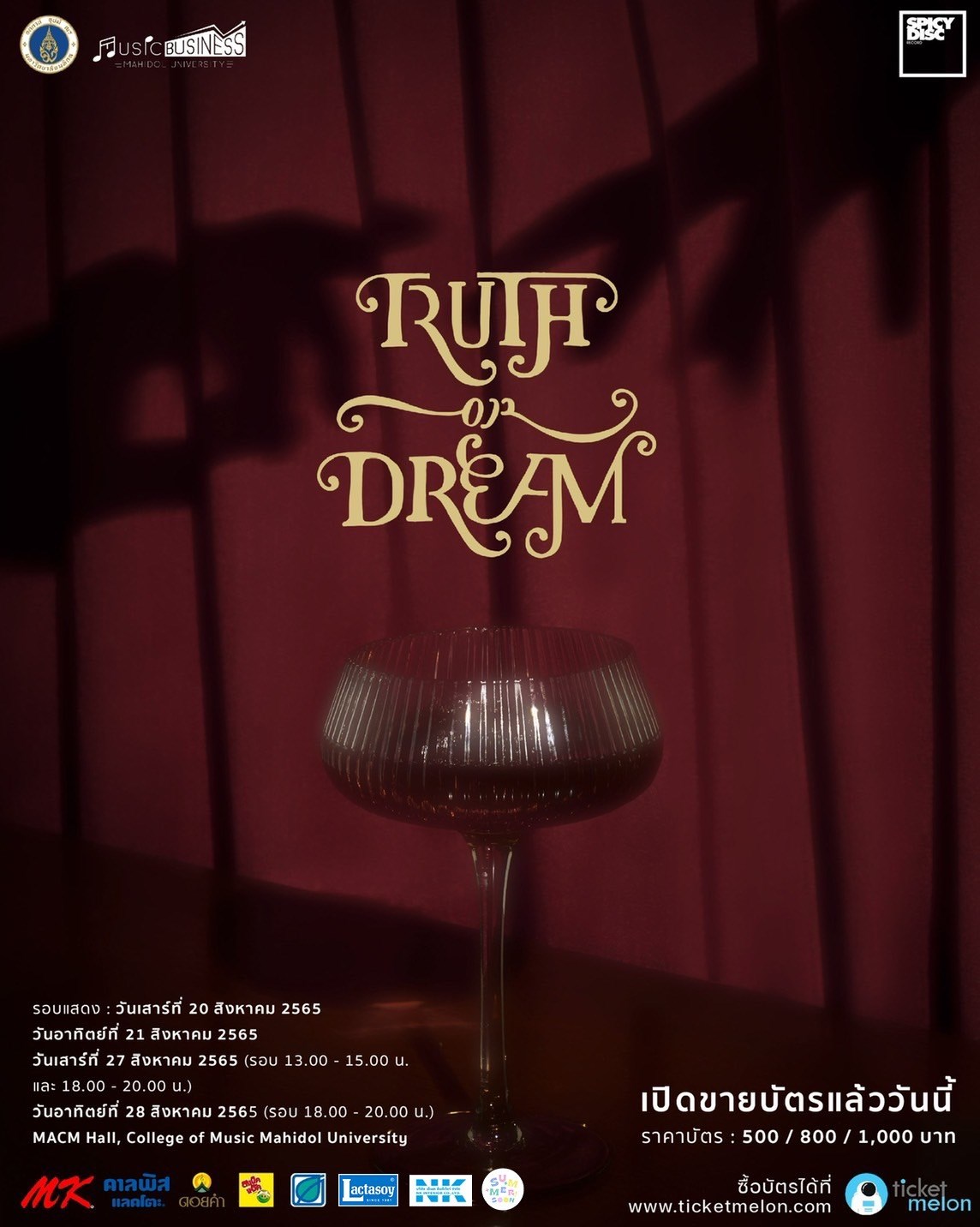 สามารถซื้อบัตรได้ที่ https://www.ticketmelon.com/master-music-business-mahidol/truth-or-dream