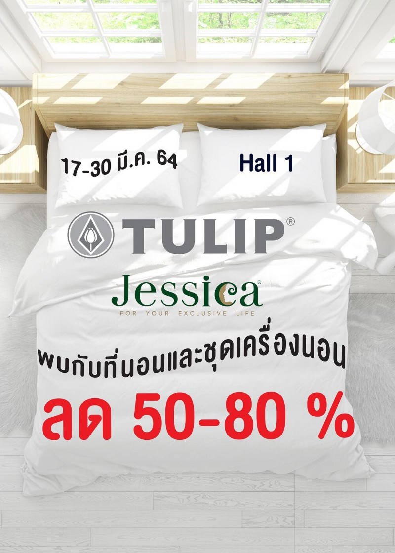 Tulip & Jessica Sale วันที่ 17 - 30 มีนาคม 2564 ณ Hall Promotion ชั้น 1 Supreme Complex Tulip & Jessica Sale ชุดเครื่องนอนคุณภาพ ออกแบบอบ่างประณีต และพิถีพิถันจากฝีมือผู้ผลิตที่เชี่ยวชาญ ลดพิเศษ 50-80%