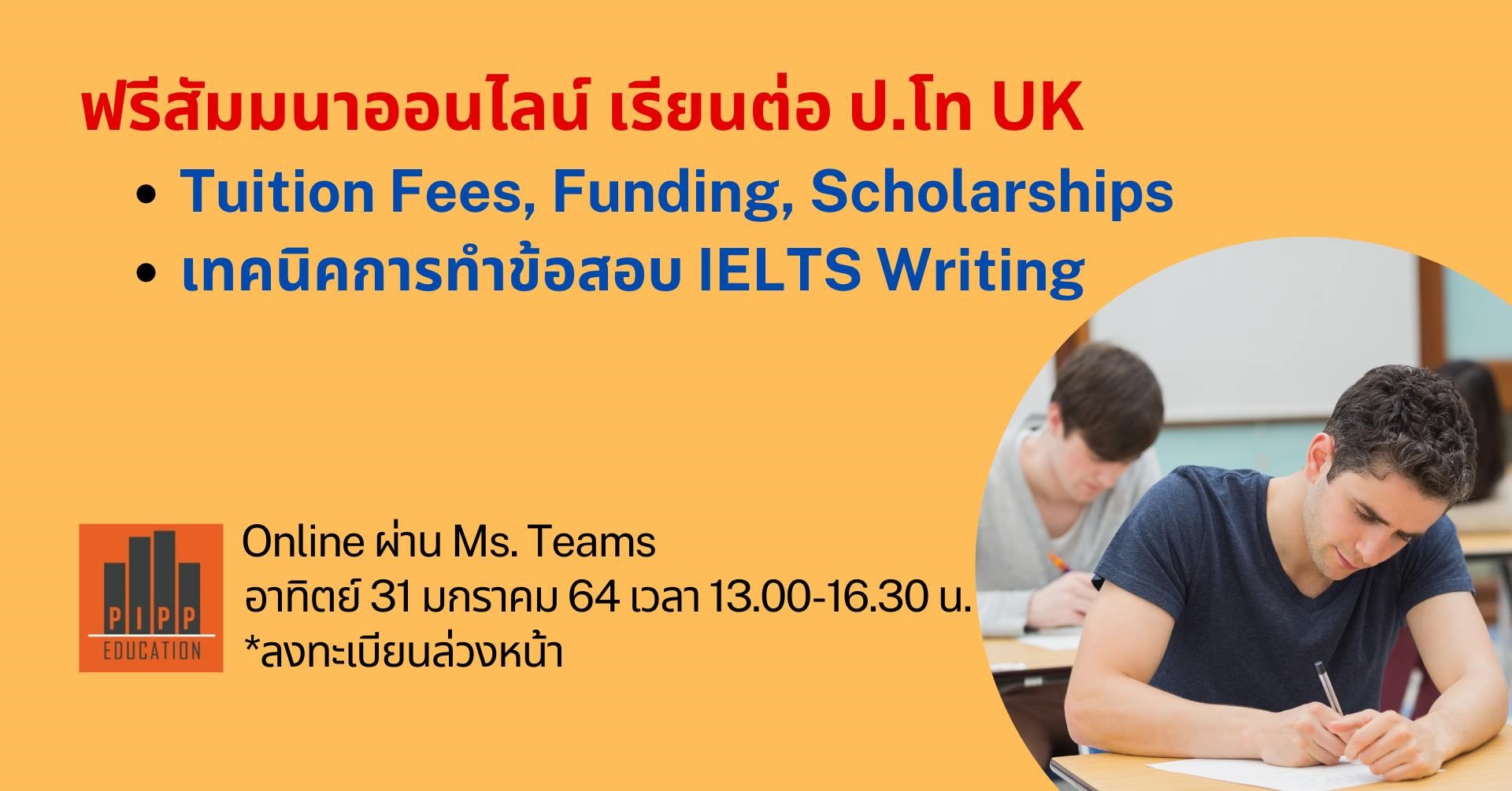ฟรีสัมมนาออนไลน์ เรียนต่อ ป.โท UK Tuition Fees, Funding, Scholarships และเทคนิคการทำข้อสอบ IELTS Writing