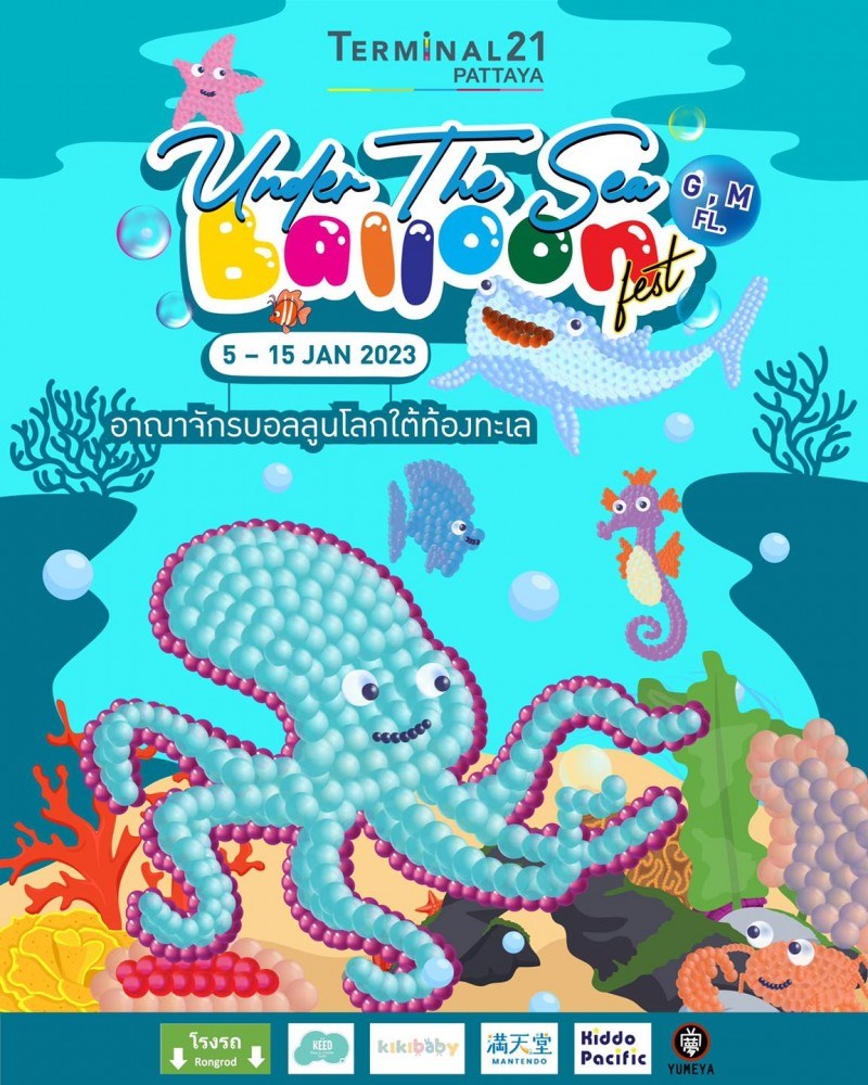 ช้อปสินค้าและเสื้อผ้าสำหรับเด็ก อัพเดทเทรนด์แฟชั่นให้กับคุณหนูๆได้ที่ ชั้น G-Paris และ ชั้น M-London วันที่ 5 - 15 ม.ค. 66 Under the Sea Balloon Fest อาณาจักรบอลลูนโลกใต้ท้องทะเล ที่ชั้น G-Paris , ชั้น M-London ศูนย์การค้าเทอร์มินอล21 พัทยา กิจกรรมและการแสดง* อาจมีการเปลี่ยนแปลงโดยไม่ต้องแจ้งให้ทราบล่วงหน้า