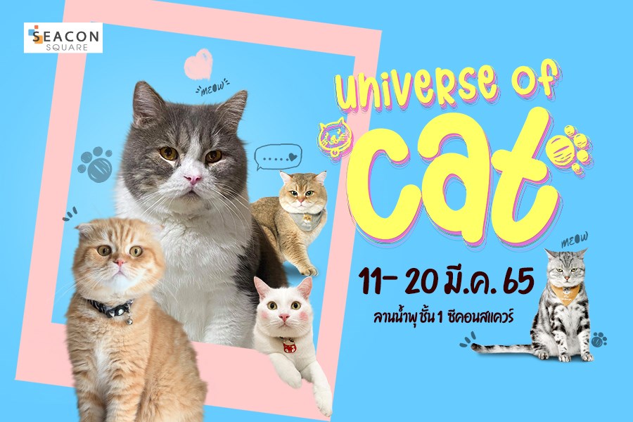 นางสาวทรงสิริวรรณ เลิศณรงค์ ผู้จัดการฝ่ายกิจกรรมการตลาด ศูนย์สรรพสินค้าซีคอนสแควร์ เผยว่าได้จัดงาน “ Universe of CAT ” เพื่อเตรียมต้อนรับปิดเทอม โดยรวบรวมทุกอย่างที่เกี่ยวกับแมวสัตว์เลี้ยงมหัศจรรย์แสนน่ารัก ชมนิทรรศการและกิจกรรมเรียนรู้ความลับของเจ้าเหมียวที่อาจไม่เคยรู้มาก่อนกับ 9 ฐานกิจกรรม พลาดไม่ได้กับการโชว์ตัวของแมวเซเลบใกล้ชิดกับซุปตาร์แมวชื่อดังสุดฮอตในโซเชียล ในวันศุกร์ที่ 11 มีนาคม พบกับคุณมณี นินิว, วันเสาร์ที่12 มีนาคม พบกับไข่ขาวลูกแมร๊, วันอาทิตย์ที่ 13 มีนาคม พบกับ Edward,มาริโอ้ เดอะแค๊ท,เจ้าต๊อดแมวขัดจรวด, วันเสาร์ที่19 มีนาคม พบกับ Bigbolt and bumblee และวันอาทิตย์ที่ 20 มีนาคม พบกับ Edward, มาริโอ้ เดอะแค๊ท,เจ้าต๊อดแมวขัดจรวด เริ่มเวลา 14.00 -16.00 น. พร้อมถ่ายภาพ Polaroid กับน้องแมวเซเลบ สำหรับลูกค้าที่พาน้องแมวมาเที่ยวงานได้รับสิทธิ์ถ่ายภาพ Polaroid จากทาง Fujifilm ฟรี! เพลิดเพลินกับกิจกรรม workshop วาดภาพ Drawing สไตล์แมวๆ โดย อ้อม สตูดิโอ ในวันที่12,13และ19,20 มีนาคม เวลา 15.00 น. และ เวลา 16.00 น., นอกจากนี้ยังมีกิจกรรมให้ร่วมสนุก อาทิเช่น กิจกรรมแมวสุ่มโชคหมุนวงล้อเพื่อลุ้นรางวัล, รวมถึงอยากเลี้ยงแมวเหมียวต้องเตรียมตัวอย่างไร, ชวนหาบ้านให้แมวจรจัด จากบ้านหมากระสอบ, สุดชิลล์ไปกับบรรยากาศของคาเฟ่แมวจากร้าน MAKURA CAT CAFÉ รวมถึงสินค้าเจ้าเหมียวที่ทาสแมวสายเปย์ต้องขนกลับรวมกว่า 40 ร้านค้า ในงาน “ Universe of CAT ” ระหว่างวันที่ 11-20 มีนาคม 2565 ลานน้ำพุ ชั้น1 ศูนย์สรรพสินค้าซีคอนสแควร์ ศรีนครินทร์
