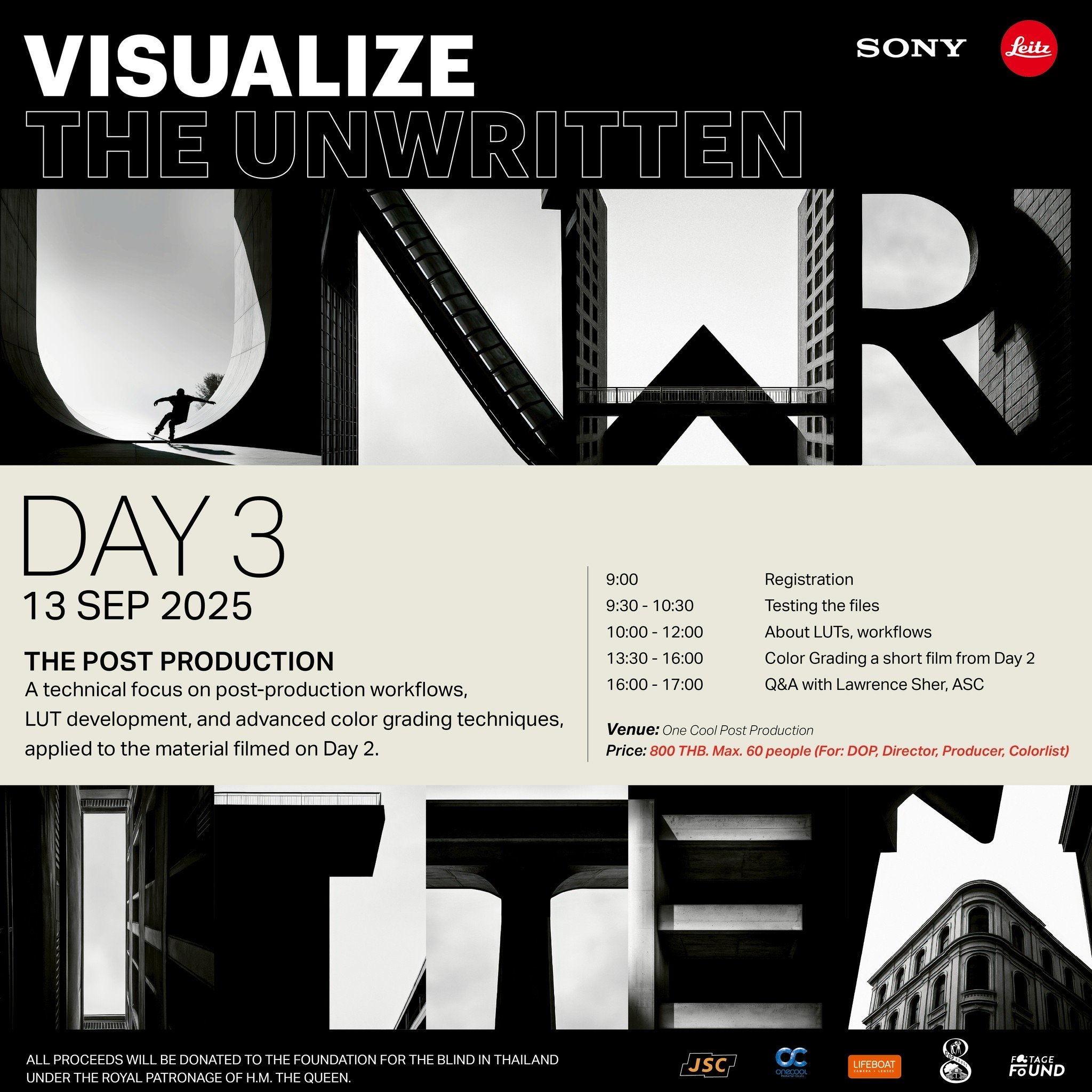 A technical focus on post-production workflows, LUT development, and advanced color grading techniques, applied to the material filmed on Day 2.