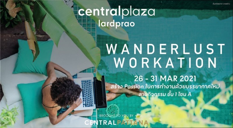 Wanderlust Workation วันที่ 26 - 31 มีนาคม 2564 ณ ลานโปรโมชั่นชั้น 1 Zone A ศูนย์การค้าเซ็นทรัลพลาซา ลาดพร้าว งานที่รวบรวมโรงแรมและรีสอร์ทชั้นนำในประเทศไทย ที่จะมาพร้อมดีลสุดพิเศษ อาทิ ห้องพักสุดหรู พร้อมอาหารเช้า, บริการนวดสปา, บุฟเฟ่ต์หรือดินเนอร์ในราคาสุดคุ้ม และ ส่วนลดอีกมากมาย เพื่อสร้าง Passion ในการทำงานด้วยบรรยากาศใหม่ ๆ ให้คุณ