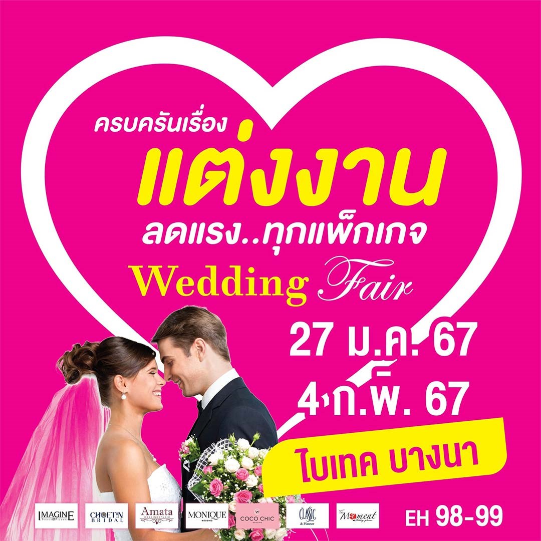 ครบครันเรื่อง "แต่งงาน" ลดแรงทุกแพ็คเกจ Wedding Fair ไปที่งาน Wedding Fair โปรโมชั่นคุ้มสุดคุ้ม ในราคาที่ไม่ต้องจ่ายแพง วันที่ 27 มกราคม - 4 กุมภาพันธ์ 2567 เวลา 10.30 - 21.00 น. ณ EH 98-99 ศูนย์นิทรรศการและการประชุมไบเทค บางนา