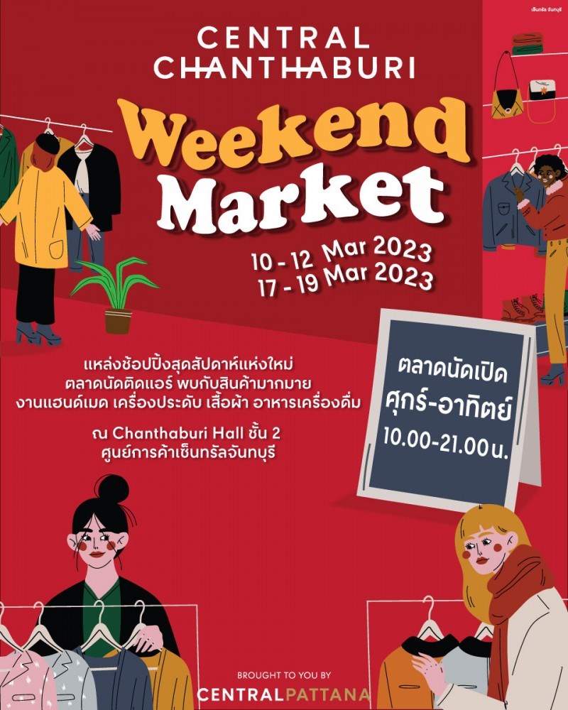 เตรียมพบกับแหล่งช้อปปิ้งสุดสัปดาห์แห่งใหม่ ตลาดนัดติดแอร์ พบกับสินค้ามากมาย ให้เลือกช้อปกันแบบจุใจ อาทิ เสื้อผ้าแฟชั่น เครื่องประดับ งานแฮนด์เมด รวมถึงโซนของกินเครื่องดื่ม ครบจบที่เดียว! แวะมาเดินช้อปแบบเพลิน ๆ พร้อมพื้นที่ส่วนกลางที่สามารถนั่งรับประทานอาหาร นอกจากนี้ภายในงานยังมีการแสดงเปิดหมวกจากเยาวชน ในช่วงเวลา 17.00 น. ของทุกวัน มาเดินช้อป เดินชิลล์ เดินชิม กันได้ วันที่ 10-12 มี.ค. 66 และ 17-19 มี.ค. 66 เวลา 10.00 - 21.00 น. ณ Chanthaburi Hall ชั้น 2 ศูนย์การค้าเซ็นทรัลจันทบุรี