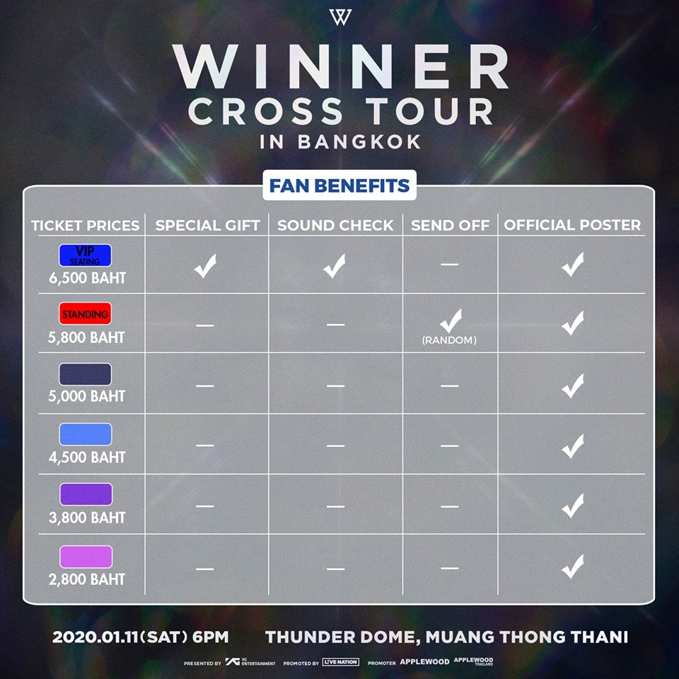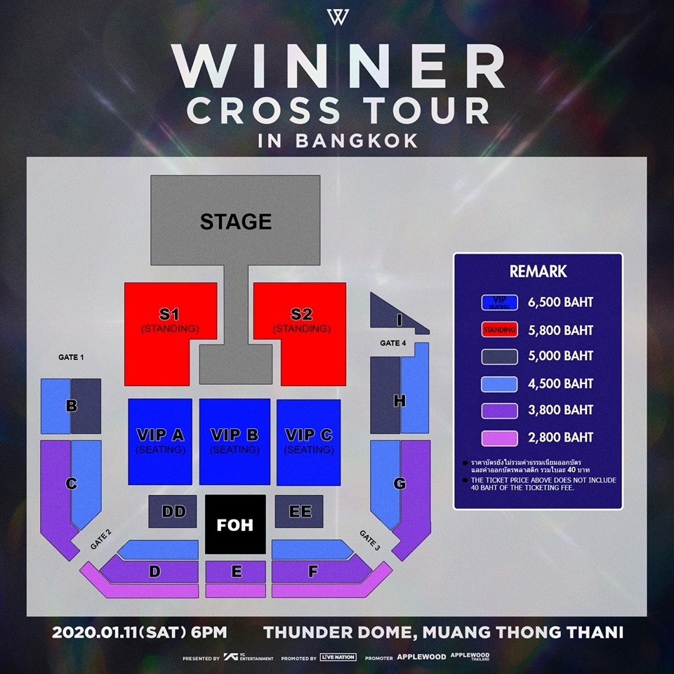 Ticket Price : 6,500 (VIP) / 5,800 (Standing) / 5,000 / 4,500 / 3,800 / 2,800 Baht