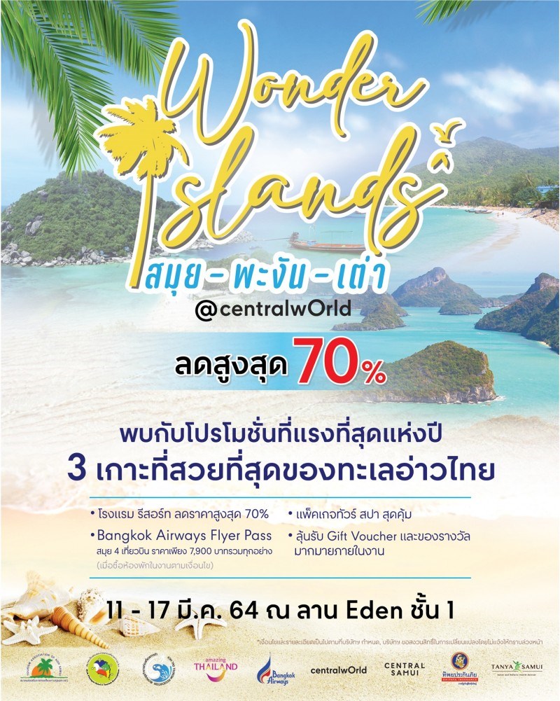 Wonder Islands วันที่ 11 - 17 มีนาคม 64 ณ ชั้น 1 โซน Eden ศูนย์การค้าเซ็นทรัลเวิลด์ โปรแรงแห่งปี "สมุย-พะงัน-เต่า" ลดสูงสุด 70% กับงานท่องเที่ยวสุดยิ่งใหญ่ใจกลางเมืองครั้งแรก ของ 3 เกาะที่สวยที่สุดแห่งท้องทะเลอ่าวไทย "สมุย-พะงัน-เต่า" ลดสูงสุด 70% !! ดีลแรงแบบนี้ เฉพาะในงาน Wonder Islands @ centralwOrld เท่านั้น!!