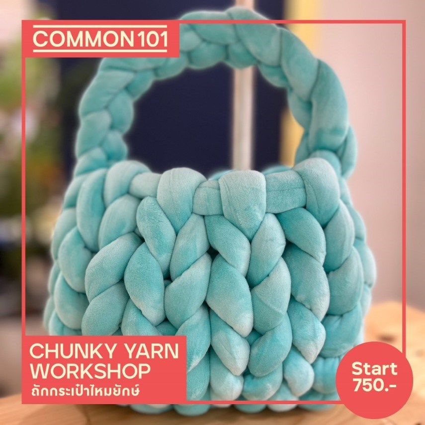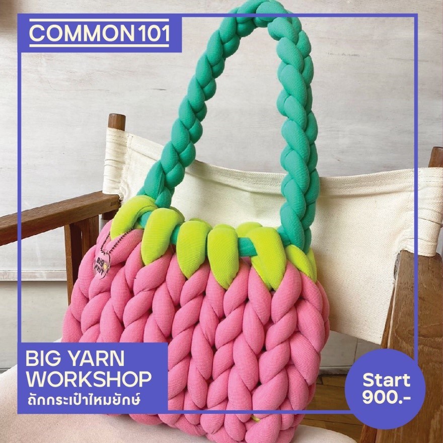 Big Yarn Colorful Workshop กระเป๋าไหมยักษ์ สีสดใส เนื้อนุ่ม มีทั้งไหมผ้ายืดและกำมะหยี่ ที่แรกในไทย เรียนถักได้ง่ายๆ พร้อมเลือกสีได้ตามใจที่ต้องการ นอกจากจะเป็นกระเป๋าที่น่ารักแล้วยังเป็นกระเป๋ารักษ์โลกอีกด้วย เนื่องจากตัวไหมพรมยักษ์ทำมาจากผ้าที่เหลือจากอุตสาหกรรมผ้ายืด และนำมาเย็บใหม่ ออกแบบดีไซน์เป็นกระเป๋าที่แสนน่ารัก โดย Bigknit