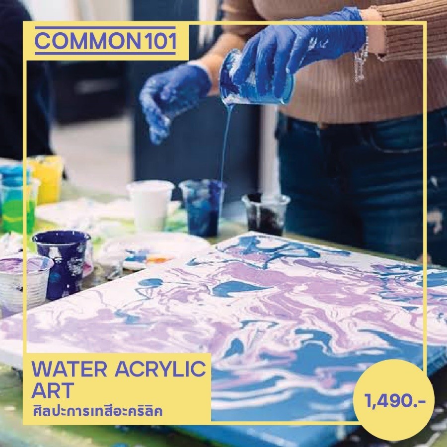 เวิร์กชอปศิลปะการเทสีอะคริลิคให้เกิดลวดลายบนผ้าใบ ไม่จำเป็นต้องมีพื้นฐาน ผู้เรียนจะได้รับเฟรมผ้าใบขนาด A4 กลับบ้าน