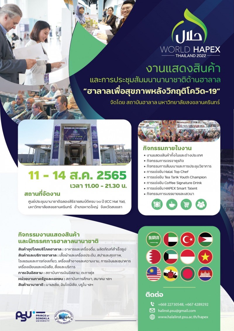วันที่ 11 - 14 สิงหาคม 2565 ณ ศูนย์ประชุมนานาชาติฉลองสิริราชสมบัติครบ ๖๐ ปี อำเภอหาดใหญ่ จังหวัดสงขลา