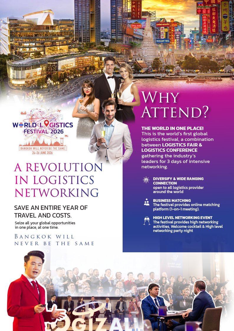 The World Logistics Festival 2026 (WLF 2026) is a premier business-to-business (B2B) trade celebration and conference organized by Logizall. It is a game-changing marketplace designed to bridge the gap between Freight Forwarders, Shippers, and Consignees. The event provides a high-energy platform for networking, business matching, and industry innovation, held at the iconic ICONSIAM Hall, Bangkok, Thailand.