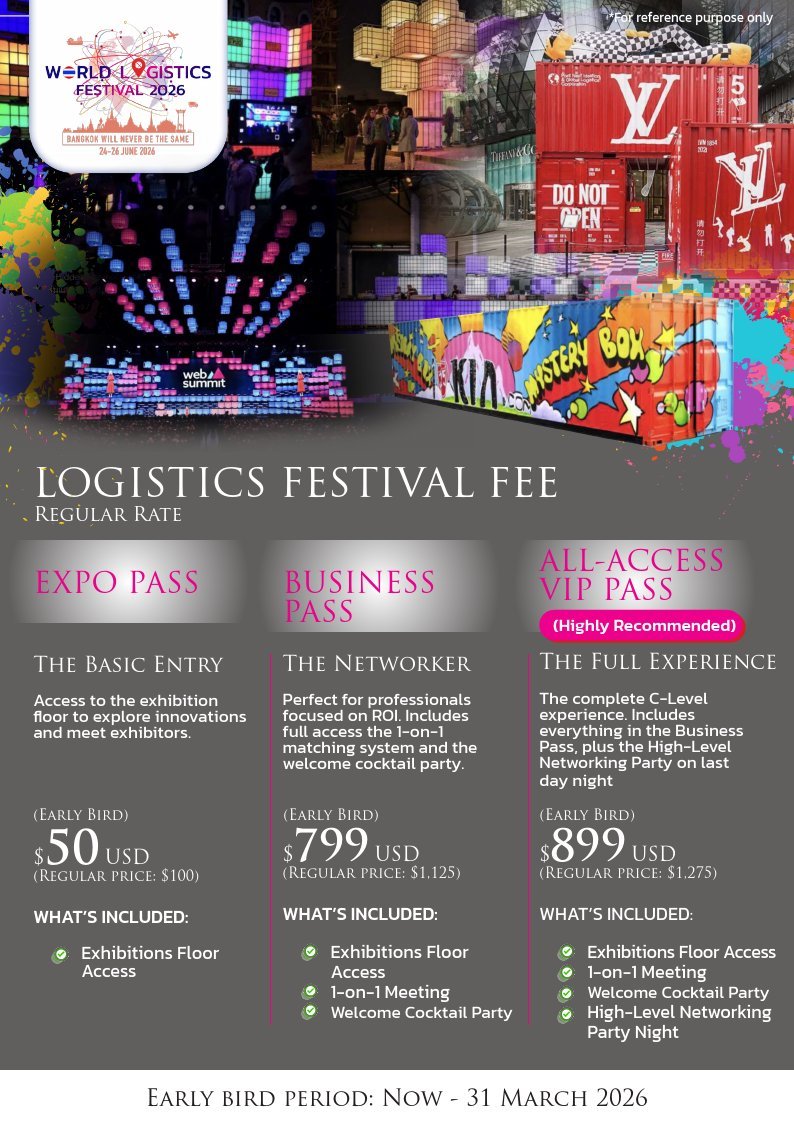 - Eligibility: While the Exhibition is open to all industry stakeholders, the Professional 1-on-1 Meeting Platform is strictly reserved for Logistics Providers only and other logistics-related service providers.