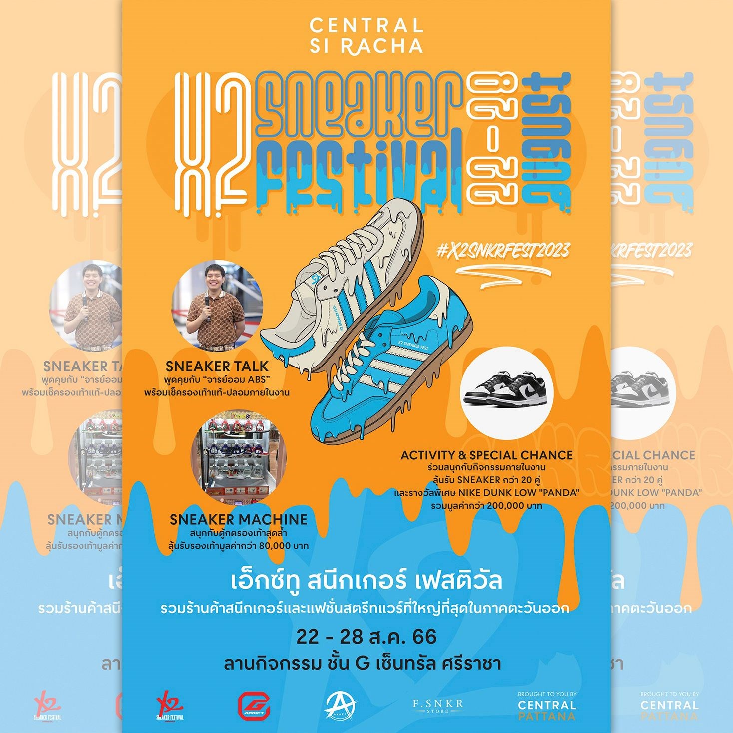 สาวก Sneaker ห้ามพลาด กับ งาน X2 Sneaker Festival ที่ยิ่งใหญ่ที่สุดในศรีราชา รวบรวมรองเท้า หายาก กว่า 20 ร้าน ชั้นนำทั่วประเทศ พบกับ จารย์ ออม ABS สนีกเกอร์เฮดแถวหน้าของเมืองไทย ภายในงาน ร่วมสนุกกับกิจกรรมภายในงาน ลุ้นรับ SNEAKER กว่า 20 คู่ และรางวัลพิเศษ NIKE DUNK LOW "PANDA" รวมมูลค่ากว่า 200,000 บาท วันที่ 22 - 28 ส.ค. 66 ณ ลานกิจกรรม ชั้น G เซ็นทรัล ศรีราชา
