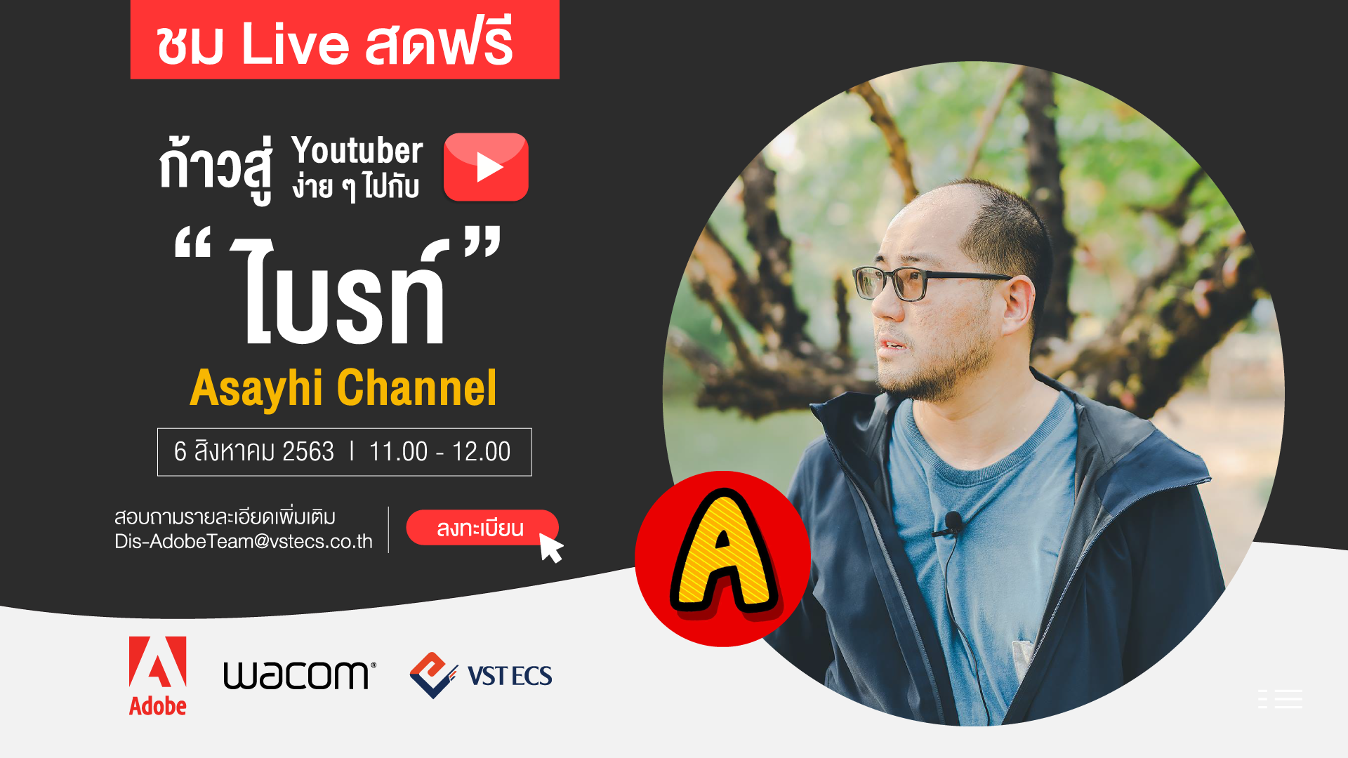 11:00 – 12:00 ก้าวสู่ Youtuber ง่ายๆไปกับ  K.ไบร์ท Asayhi